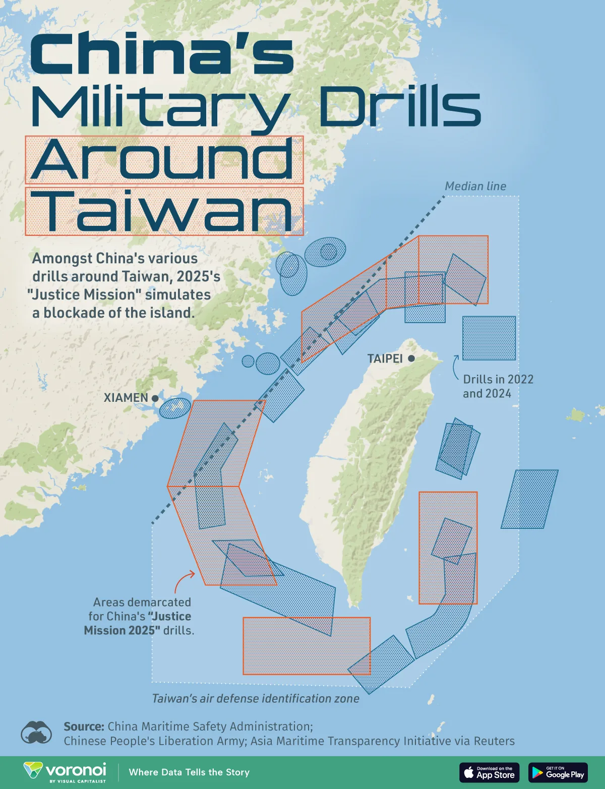 Mapped: China’s Military Drills Around Taiwan (2022-2025)