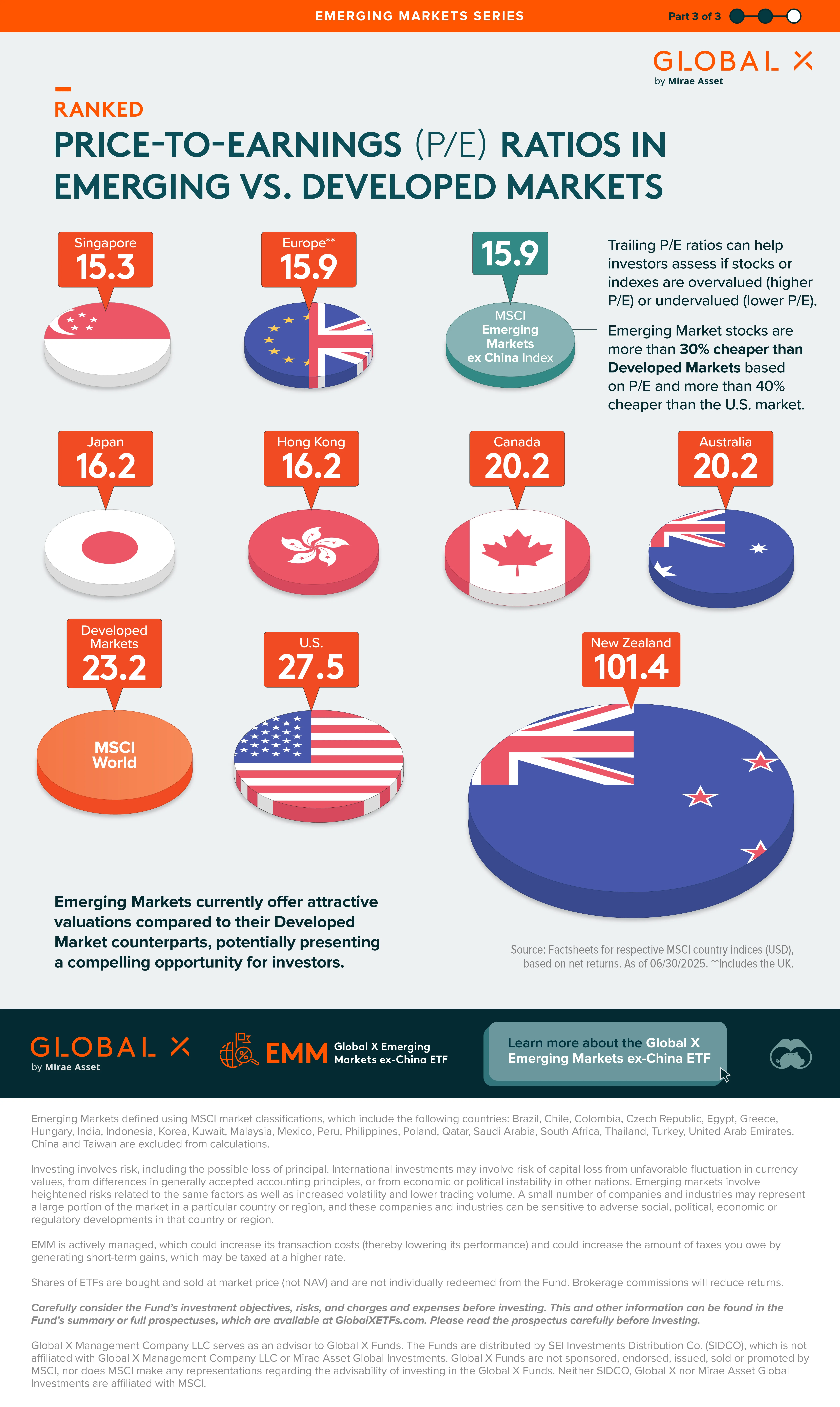 In this graphic, the third and final in the EMs Series, Visual Capitalist has partnered with Global X ETFs to explore the P/E ratios of Emerging and Developed Markets.